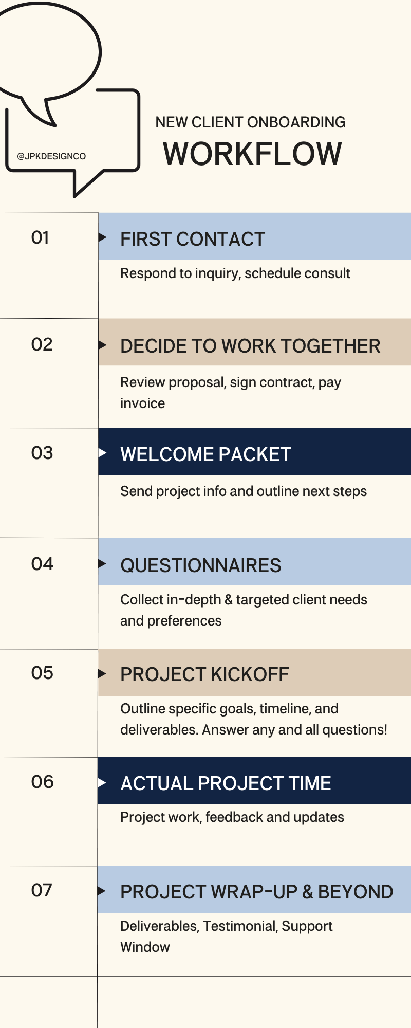 Next, create the tools and forms you'll need. Think about welcome packets, questionnaires, contracts, and project schedules. Having these ready to go will save you lots of time in the future.