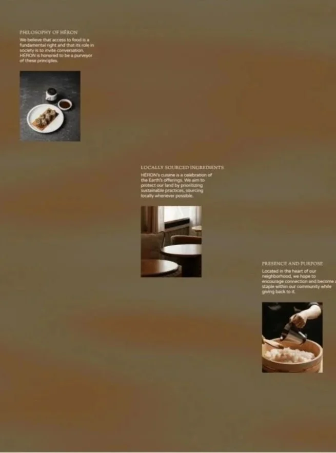 Heron works beautifully for upscale, creative restaurants and food businesses focused on cultivating an immersive experience.