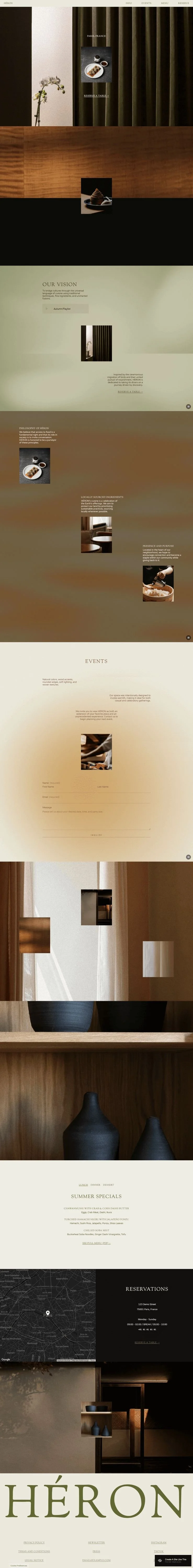 The single-page format is simple without feeling simplistic. The design quality, grain effects, and thoughtful pacing make it clear this is a serious establishment. That balance is hard to achieve with one-page layouts, but Heron absolutely nails it in my opinion.
